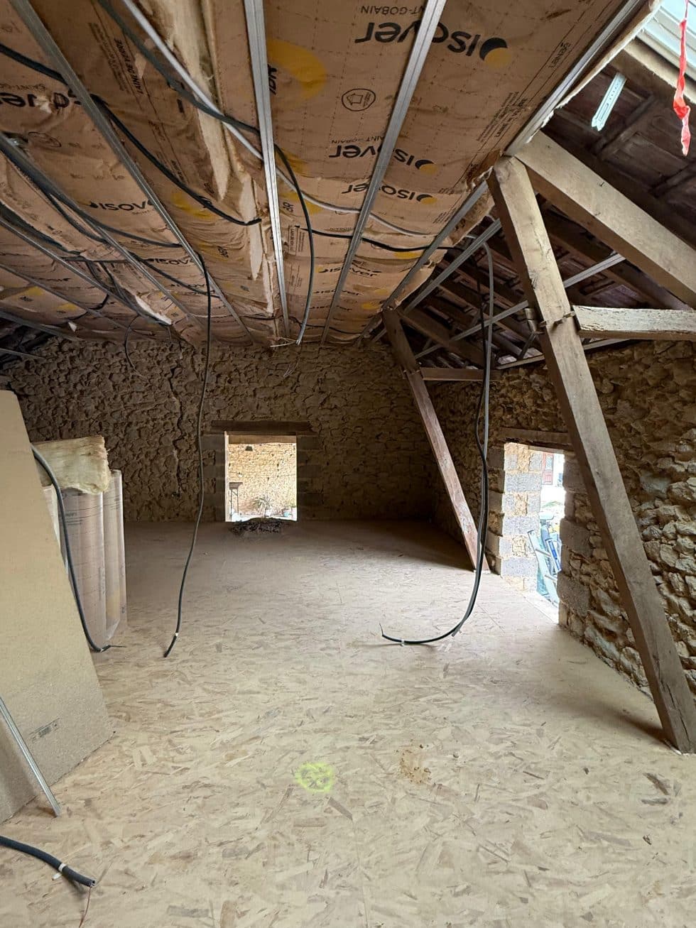 Basés à Tarbes, notre équipe de plaquistes expérimentés sublime vos espaces bruts en lieux habitables modernes, comme cette rénovation complète d’étage de grange avec cloisons en plaques de plâtre isolées et faux plafonds intégrés.